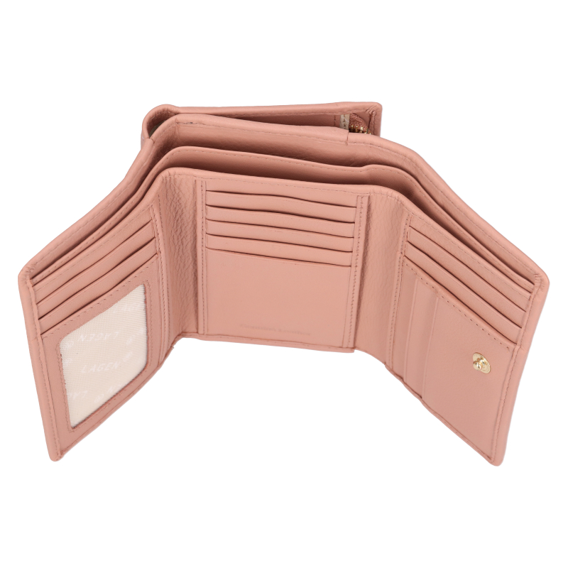 Dámská kožená peněženka s důrazem na vysoce elegantní design. Vnitřní uspořádání plní praktičnost, ale zároveň i podmínku elegance a originality.