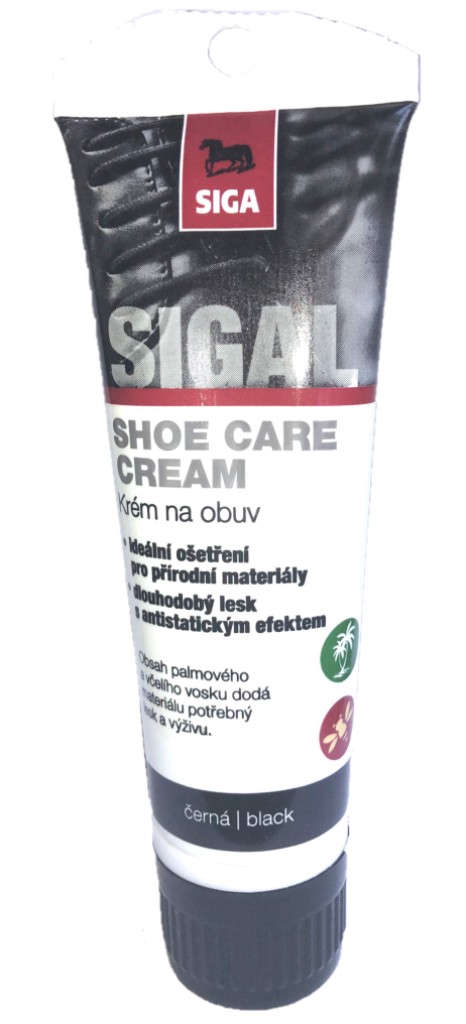 SIGAL Krém na obuv s aplikátorem je prémiový ošetřující krém pro hladkou přírodní kůži. Vyživuje, chrání a dodává dlouhotrvající lesk, přičemž zajišťuje pružnost materiálu a ochranu před vlhkostí a praskáním.