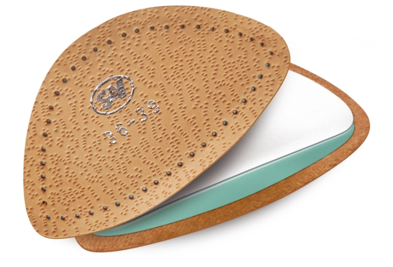 Tento tenký výlisek z lehčené pryže s přírodní usní jednoduše vlepíte do jakýchkoli bot. Díky samolepicí vrstvě perfektně drží na místě a ihned začíná korigovat došlap, zvyšuje komfort a snižuje zátěž chodidel i kloubů.