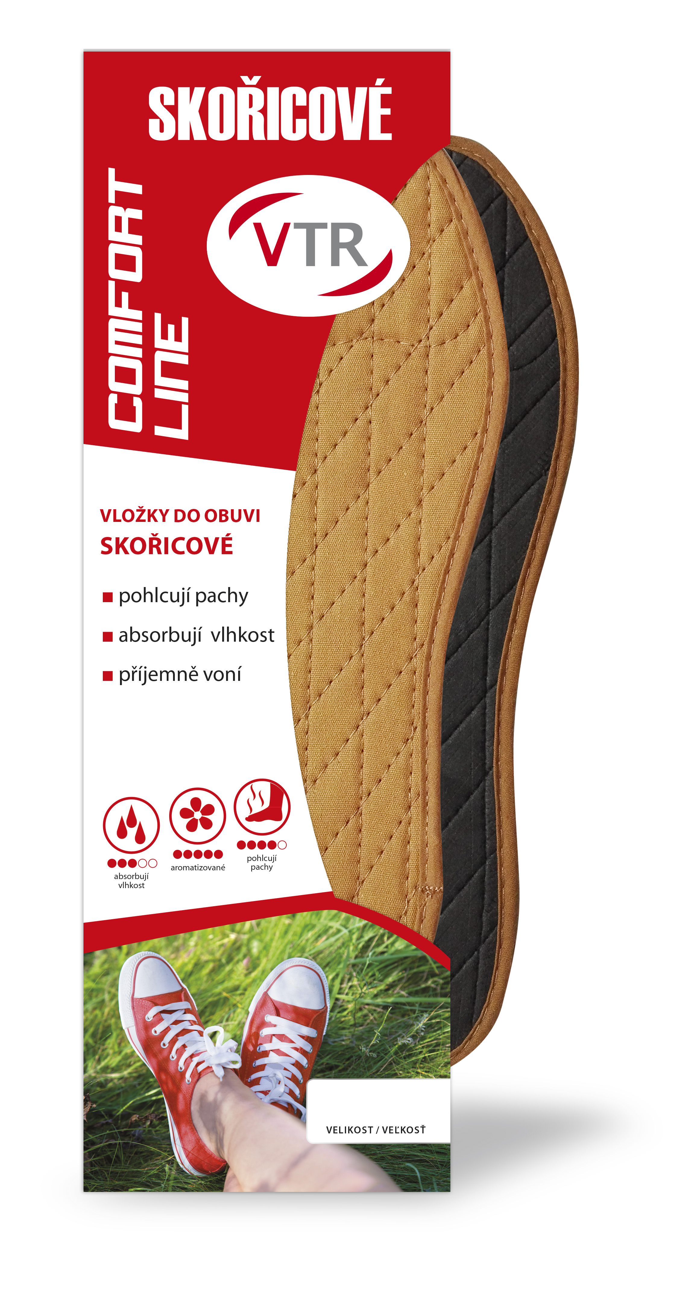- Střední vrstva: přírodní skořicový prášek se zázvorem – antibakteriální, absorbuje vlhkost a uvolňuje vůni.